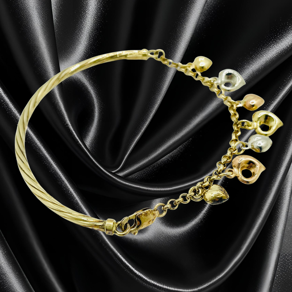 18k Yellow And White Gold Heart Charm Bangle/Chain Bracelet