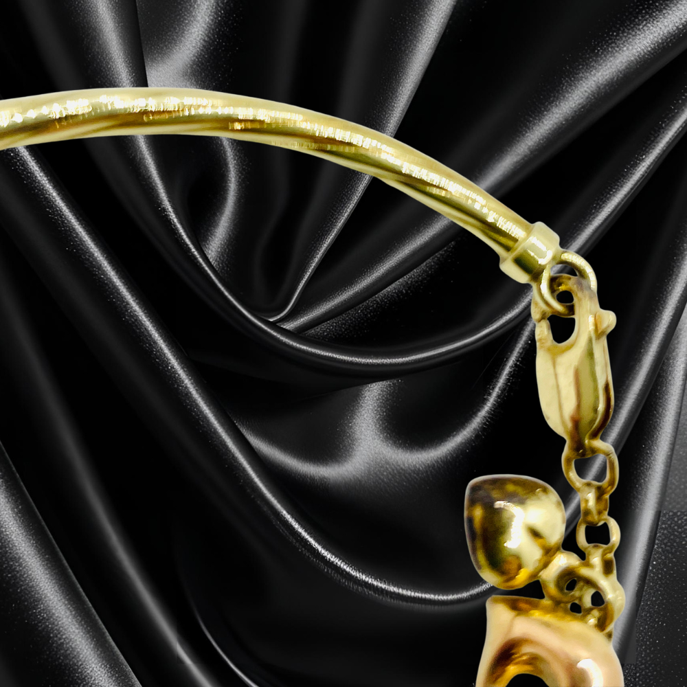 18k Yellow And White Gold Heart Charm Bangle/Chain Bracelet: