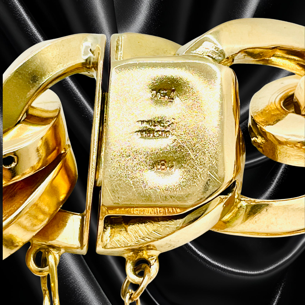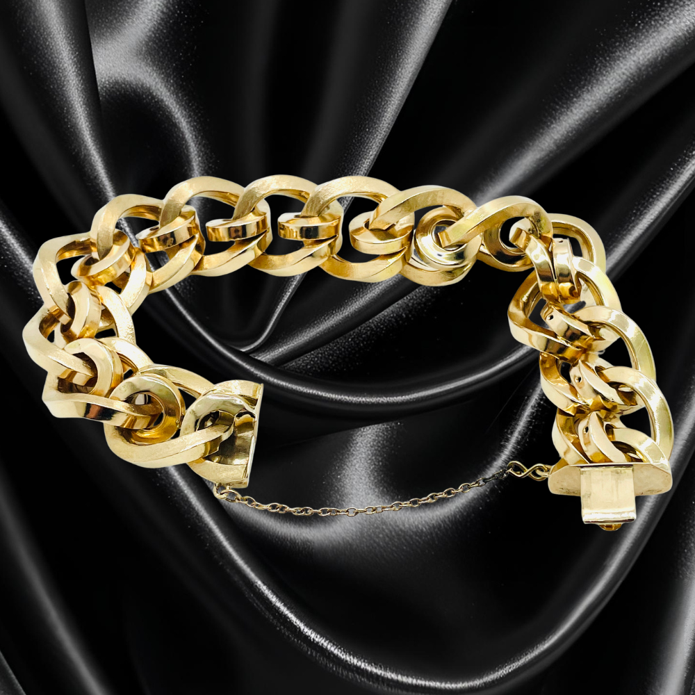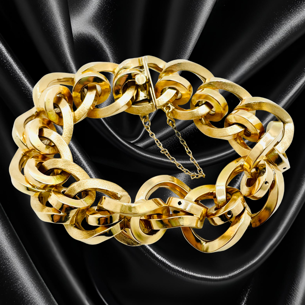 Make a statement with our remarkable 18Kt Yellow Gold Fancy Twisted Link Bracelet! Enjoy the perfect blend of beauty and craftsmanship. Buy yours now!